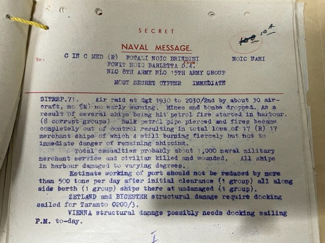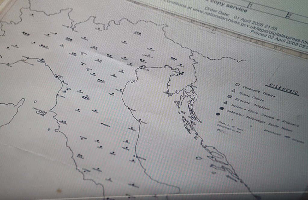 Alcuni documenti militari del Terzo Reich dimostrano che nell’agosto dell’anno 1944, durante la loro ritirata, le truppe tedesche hanno deliberatamente affondato in mare 84 tonnellate di testate all’arsenico e 1316 tonnellate di bombe all’iprite modello mussoliniano C. 500T.