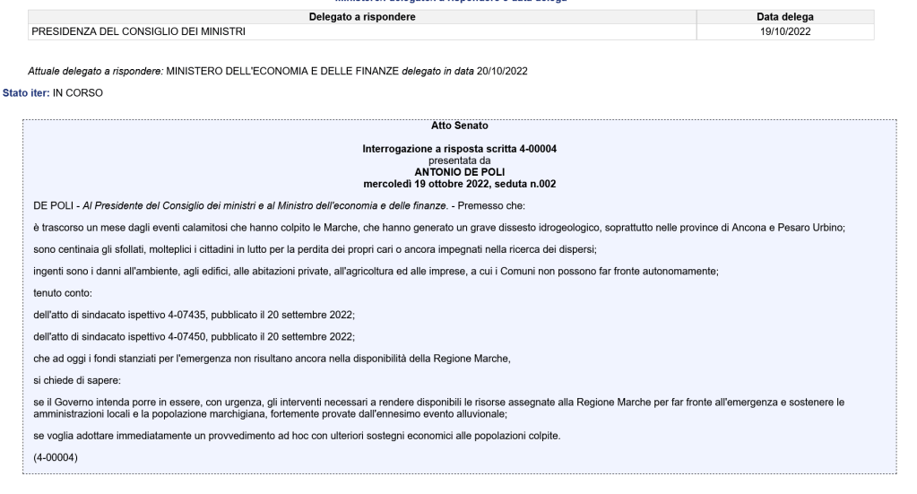 Ad ancona e dintorni, o meglio nel feudo marchigiano vale il motto fascista “me ne frego”. Per il governino Meloni, le Marche non esistono, se non per la campagna elettorale del meloniano Acquaroli. Il prossimo 22 ottobre saranno ben 3 anni dall’insediamento dell’esecutivo di Giorgia, ma per le Marche non c’è attenzione concreta. Ecco la prova dell’indifferenza totalitaria. Alla conta dei numeri, sono almeno trenta (30) gli atti parlamentari – nel corso della XIX legislatura – ai quali l’inquilina pro tempore di Palazzo Chigi ed i suoi camerati, non hanno mai risposto. Eppure, si tratta di gravi problemi che attanagliano questa regione: dalla sanità all’ambiente (con l’inquinamento a livelli da primato internazionale), dal lavoro alle infrastrutture stradali e ferroviarie; dalla speculazione edilizia alla mafia dei colletti bianchi (ma non solo), dal dissesto idrogeologico alle alluvioni passando per le conseguenze disastrose dei terremoti e così via.