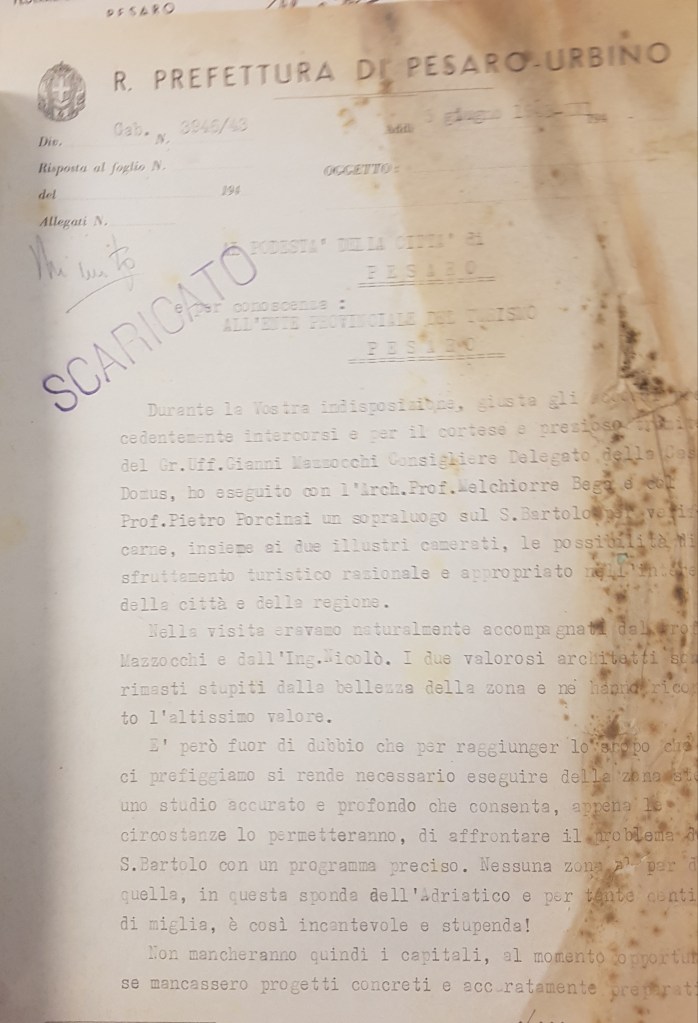 Infatti, già sotto la dittatura fascista – durante il lugubre ventennio mussolinano – si allungavano le mire per stuprare – con tutti i crismi – un luogo straordinario di falesie viventi sul mare Adriatico centrale. I documenti rintracciati all’Archivio di Stato a Pesaro parlano chiaro.