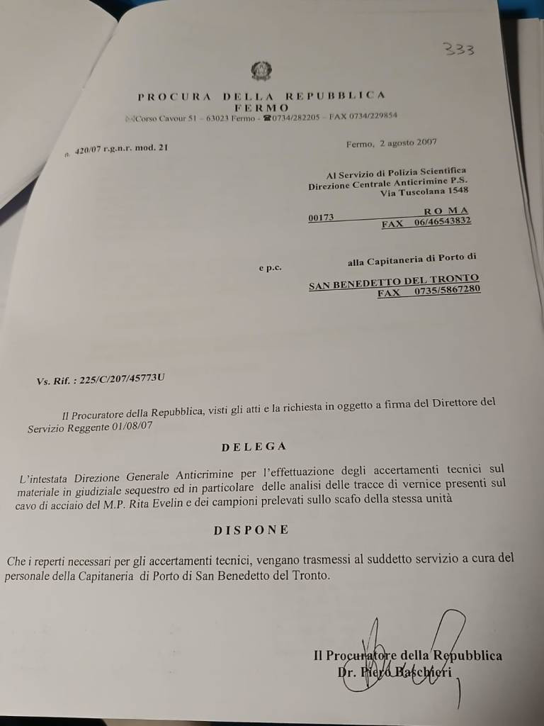 Attualmente il Tribunale di Ascoli Piceno oppone un incredibile diniego all’accesso del fascicolo giudiziario contenente le videoriprese subacquee – effettuate nel novembre 2006 da Guardia Costiera, Vigili del Fuoco e Rana Diving – motivato dalla presenza in archivio dell’amianto.