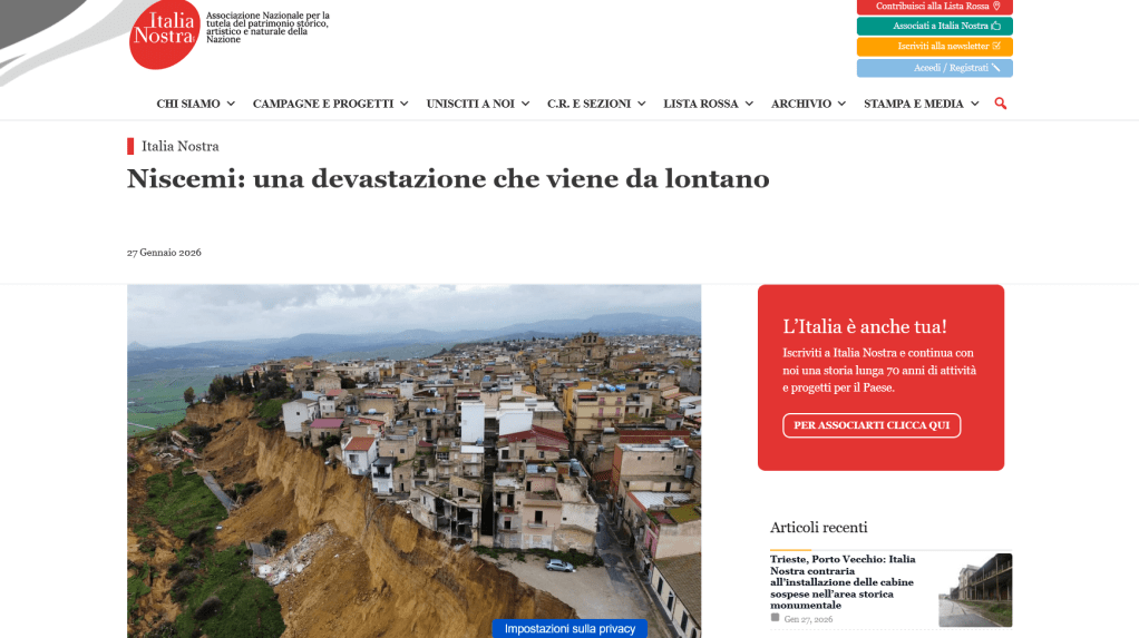 Frana tutto: altro che Ponte sullo Stretto imposto da Salvini. Poco o niente di naturale: l’ultimo disastro ambientale era annunciato da almeno tre decenni. E c’entra parecchio l’asservimento dei politicanti nostrani allo zio Sam che ha militarizzato e nuclearizzato il Belpaese.