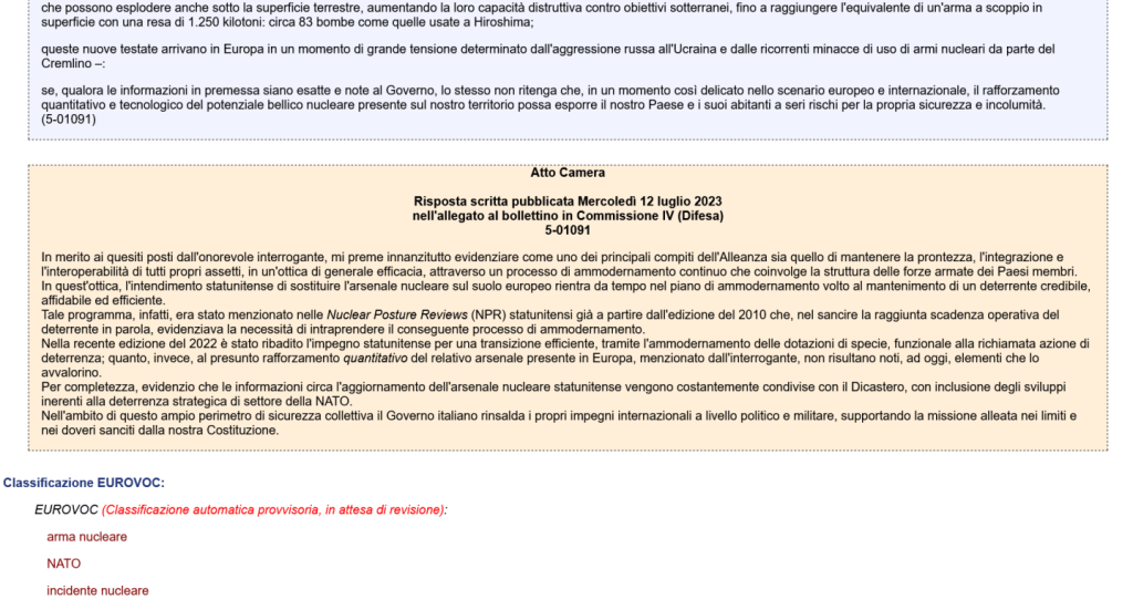 Nel Belpaese la notizia è sfuggita ai mass media, ma la conferma ufficiale è giunta nientedimeno che dal sottosegretario di Stato alla Difesa, ovvero Isabella Rauti, in risposta ad un atto parlamentare di sindacato ispettivo.