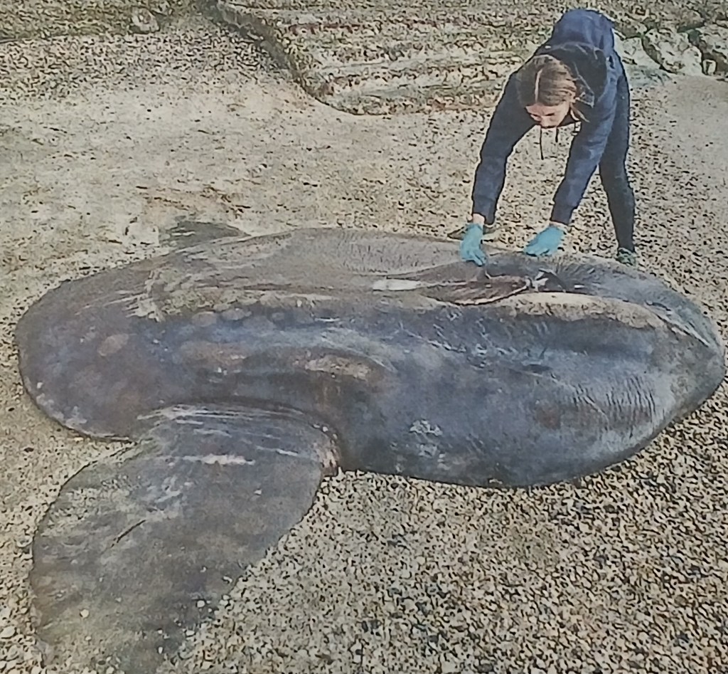 Spiaggiato a riva in tempo di pace (apparente): lungo due metri e mezzo per quattrocento chilogrammi di peso. La mattina del 10 marzo 2026 un pesce luna (mola mola: tipico del Mediterraneo) è stato rinvenuto sulla spiaggia di Marina di Ravenna. Nessun segno apparente di eliche o di reti sulla carcassa. L’università di Padova l’ha recuperato per analizzarlo. Morte naturale?