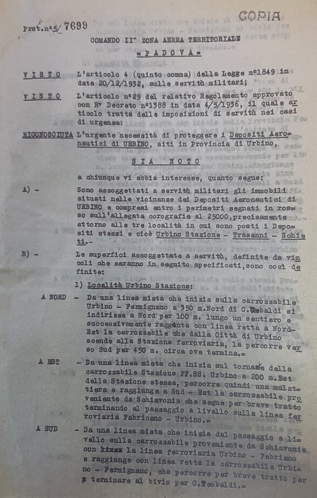 Il 16 gennaio dell’anno 1939, più di un anno prima della dichiarazione di guerra annunciata da Palazzo Venezia a Roma (10 giugno 1940), Benito Mussolini ordinò di utilizzare queste cavità ferroviarie per la guerra non ancora proclamata: un arsenale segreto di esplosivi speciali, gestito dalla Regia Aeronautica. E così sorse – previo esproprio dei terreni agricoli – il 14° deposito nazionale di armi chimiche, proibite dalla Convenzione di Ginevra del 1925, progettato e costruito dalla Seconda Regione Aerea di stanza a Padova.