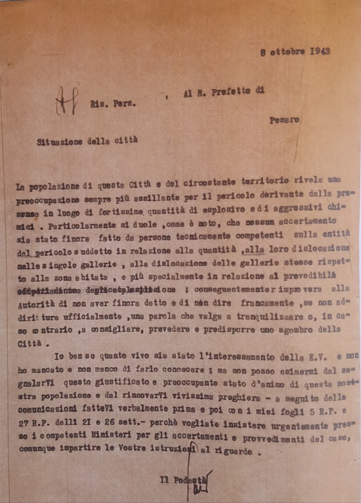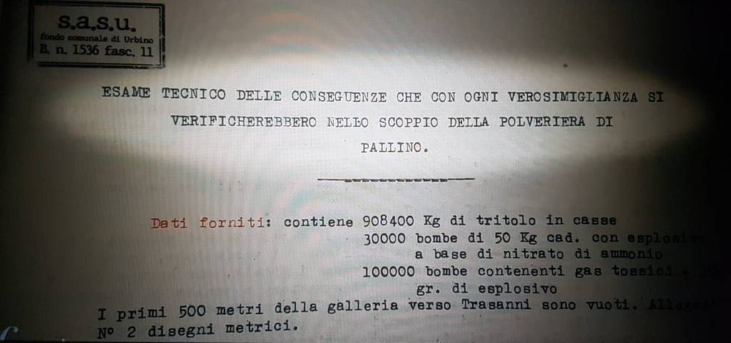 Ma c’è di più. Nel dicembre del 1943 le truppe germaniche se ne impossessano, coadiuvati dalla compagnia militare italiana K (specializzata nella guerra chimica e batteriologica). In un rapporto nazitedesco del Sonderkommando Meyer, non solo c’è la conferma dell’esistenza del gas iprite sotto Urbino (usato a partire dal 1935 durante i bombardamenti della popolazione civile in Etiopia), ma anche di grossi barili pieni di arsenico. Quindi, in effetti, questo luogo era potenzialmente pericolosissimo.