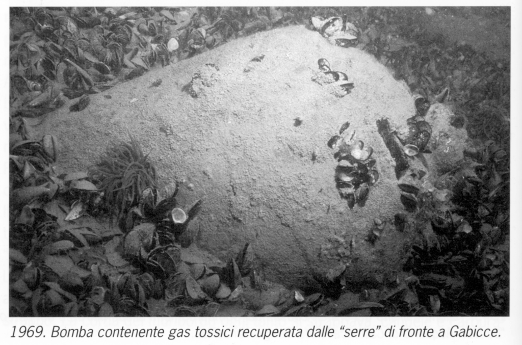 Il 20 novembre 1951 in seguito ad un’interrogazione parlamentare di Enzo Capalozza, l’allora sottosegretario alla Marina Mercantile Tambroni, conferma la presenza di ben sei discariche di armi chimiche dinanzi a Pesaro. I pescatori locali, chiamano “la proibita” questa funestata zona e non ci pescano da oltre mezzo secolo, dopo i tanti incidenti a partire dal 1946 in cui hanno perso la vita e spesso si sono infortunati gli inermi lavoratori del mare. Per la scienza: iprite e arsenico sono sostanze cancerogene.