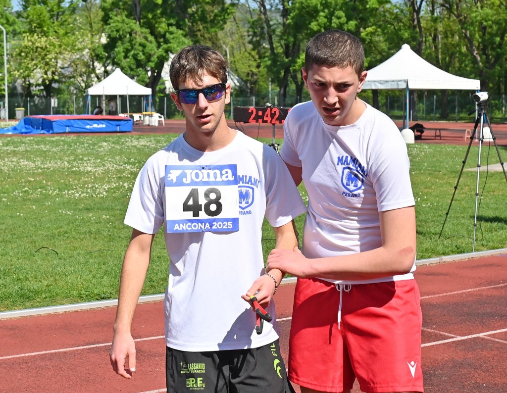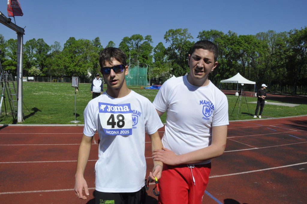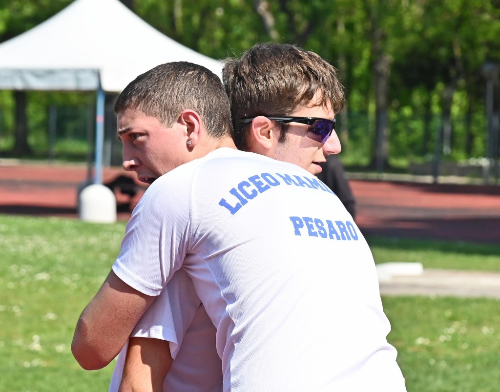 I due adolescenti che mai avevano corso insieme, si sono allenati sotto la pioggia per affrontare le intemperie metereologiche, ma pure esistenziali. La vita con loro non è stata tenera: ad uno ha sottratto la vista, all’altro la mamma da bambino. Eppure sorridono al mondo con occhi cristallini. E la loro giovialità contagia chiunque. Hanno vinto in ogni caso e si sono qualificati per le fasi regionali. Ancora insieme in pista, ad Ancona: mercoledi 22 aprile 2026, in un nuovo mattino di sole.